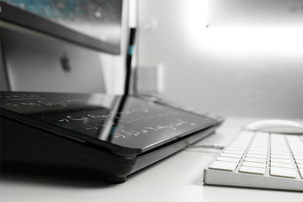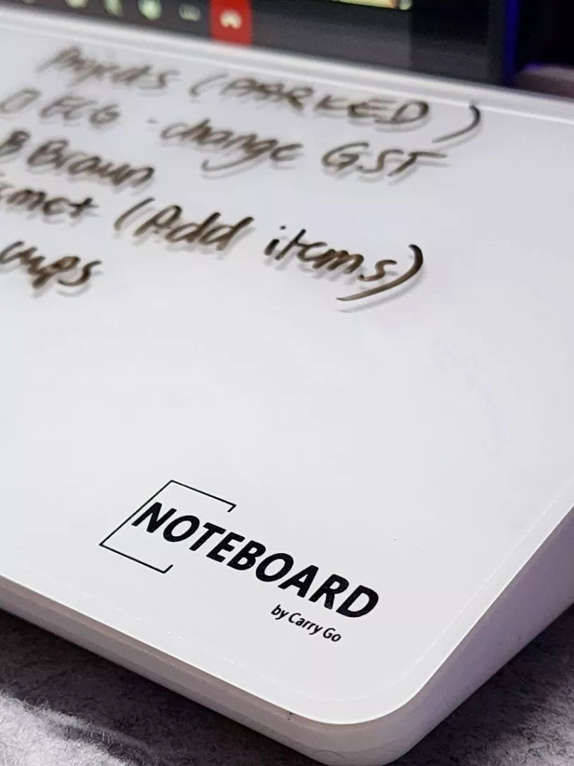 The NoteBoard's surface is made from an ultra premium, thick, anti-stain and scratch resistant glass panel, perfect for taking notes and erasing them with ease when finished.