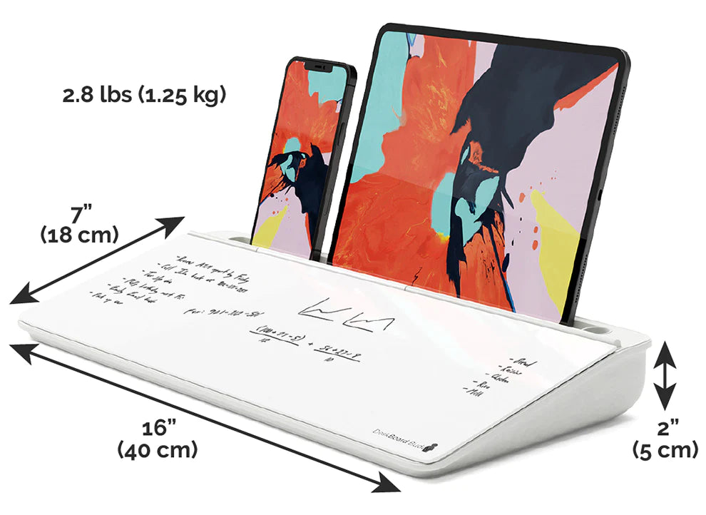 Also features an iPad, marker and mobile phone stand, allowing you to view your phone or tablet at the perfect viewing angle while you work.